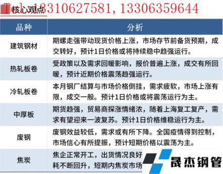 黑色期市偏強(qiáng)運(yùn)行,貿(mào)易商報(bào)價(jià)上揚(yáng)。從成交方面來(lái)看,由于期螺漲幅較多,市場(chǎng)剛需有所釋放,部分投機(jī)性需求增加。短期來(lái)看,近期全國(guó)多地一攬子穩(wěn)經(jīng)濟(jì)政策積極出臺(tái),穩(wěn)定市場(chǎng)情緒,在政策加持下,現(xiàn)貨價(jià)格有所反彈。加之,上海6月1日起全面恢復(fù)正常生產(chǎn)生活秩序,預(yù)示著需求將逐步回暖。隨著市場(chǎng)信心的逐步建立,短期鋼價(jià)呈現(xiàn)震蕩偏強(qiáng)運(yùn)行。