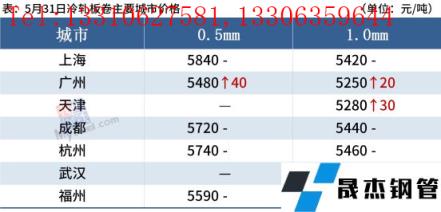 冷軋板卷:5月31日,全國(guó)24個(gè)主要城市1.0mm冷卷均價(jià)5434元/噸,較上個(gè)交易日上漲6元/噸。由于本月無(wú)縫厚壁鋼管廠家結(jié)算多不理想,與市場(chǎng)價(jià)格形成倒掛,再加上需求持續(xù)疲軟,現(xiàn)貨市場(chǎng)跟漲動(dòng)力不足,商家多以穩(wěn)價(jià)出貨回籠資金為主,今日整體成交表現(xiàn)一般。據(jù)悉,上海6月1日倉(cāng)庫(kù)取消通行證提貨要求,倉(cāng)庫(kù)有望恢復(fù)正常加工提貨,由于臨近解封,上海市場(chǎng)觀望情緒較為濃厚,悲觀情緒有所改善。預(yù)計(jì)1日國(guó)內(nèi)冷軋板卷價(jià)格或?qū)⒄鹗庍\(yùn)行為主。