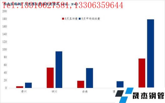 五月西南無縫厚壁鋼管廠家螺紋鋼直供量76.62萬噸,市場投放量178.66萬噸。分區域來看,四川無縫厚壁鋼管廠家螺紋鋼直供量52.92萬噸,市場投放量95.18萬噸;重慶無縫厚壁鋼管廠家螺紋鋼沒有直供量,市場投放量17.8萬噸;云南無縫厚壁鋼管廠家螺紋鋼直供量19.2萬噸,市場投放量51.98萬噸;貴州無縫厚壁鋼管廠家螺紋鋼直供量4.5萬噸,市場投放量13.7萬噸。