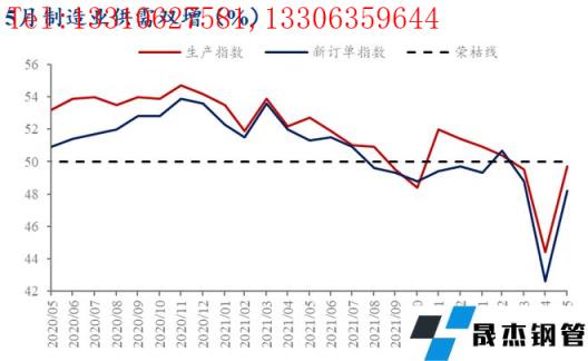 二、5月制造業(yè)PMI指數(shù)呈供需雙增的態(tài)勢,需求回升力度大于供給,大體符合前期判斷。4月筆者發(fā)布的文章《4月制造業(yè)PMI指數(shù)低迷,未來厚壁無縫鋼管消費何去何從?》中便提到,隨著我國經(jīng)濟逐步復(fù)蘇,需求復(fù)蘇的彈性將快于供給端。從數(shù)據(jù)來看,5月新訂單指數(shù)大幅回升5.6個百分點至48.2%,回升幅度高于生產(chǎn)指數(shù)。據(jù)國家統(tǒng)計局數(shù)據(jù),5月專用設(shè)備、汽車等行業(yè)生產(chǎn)指數(shù)較上月大幅上升10個百分點以上,升至擴張區(qū)間;石油煤炭及其他燃料加工、化學(xué)原料及化學(xué)制品、黑色金屬冶煉及壓延加工等行業(yè)新訂單指數(shù)重回擴張區(qū)間。
