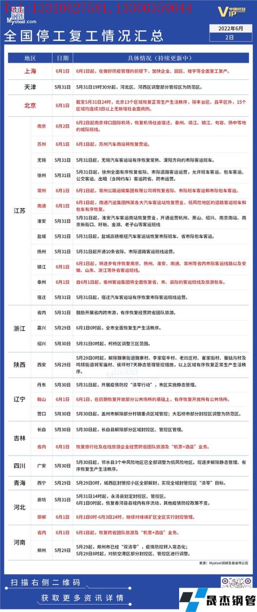 免責聲明:本網站(山東聊城晟杰無縫鋼管廠www.maturesexus.com)刊載的“疫情影響丨全國停工復工情況匯總(6月2日)”等均源于網絡,版權歸原作者所有,且僅代表原作者觀點,本文所載信息僅供參考。轉載僅為學習與交流之目的,如無意中侵犯您的合法權益,請及時聯系刪除。本網站刊登此篇文章并不意味著本站贊同其觀點或證實其內容的真實性,我們不對其科學性、嚴肅性等作任何形式的保證。如果侵犯了您的版權,請盡快聯系我們予以撤銷,謝謝合作!