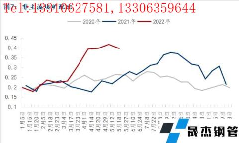 同期,無縫厚壁鋼管廠家主流中低品澳粉占比24%,環比下降3個百分點,同比去年同期增加2個百分點,整體來看,主流中低品澳粉配比略低于今年春節附近但略高于去年同期水平。
