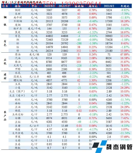 免責聲明:本網站(山東聊城晟杰無縫鋼管廠www.maturesexus.com)刊載的“周報:大宗工業原材料、能源及農產品價格周報(5.30-6.02)”等均源于網絡,版權歸原作者所有,且僅代表原作者觀點,本文所載信息僅供參考。轉載僅為學習與交流之目的,如無意中侵犯您的合法權益,請及時聯系刪除。本網站刊登此篇文章并不意味著本站贊同其觀點或證實其內容的真實性,我們不對其科學性、嚴肅性等作任何形式的保證。如果侵犯了您的版權,請盡快聯系我們予以撤銷,謝謝合作!