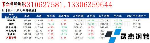 據(jù)統(tǒng)計(jì),建材方面,分品種來看,本周螺紋產(chǎn)量環(huán)比增量,從區(qū)域來看除華中、華南和西北,其余均有增產(chǎn);華東增產(chǎn)集中于江蘇,原因在于鐵水恢復(fù)和設(shè)備復(fù)產(chǎn),西北降產(chǎn)集中于新疆,原因在于企業(yè)集中停限產(chǎn);線盤產(chǎn)量環(huán)比下降,除華北、西北和東北,其余均有增產(chǎn),但各區(qū)域產(chǎn)量變化幅度均不大。整體來看,建材供應(yīng)環(huán)比增量,多數(shù)區(qū)域鋼企生產(chǎn)狀態(tài)相對(duì)持穩(wěn)。熱卷方面,本周熱軋產(chǎn)量繼續(xù)回升,主要增幅地區(qū)是華東地區(qū),主要是前期檢修無縫厚壁鋼管廠家本周恢復(fù)完全滿產(chǎn),供給繼續(xù)回升,主要降幅地區(qū)是東北、華北、西南地區(qū),其中東北地區(qū)有無縫厚壁鋼管廠家主動(dòng)小幅減產(chǎn),華北和西南則是有新增無縫厚壁鋼管廠家檢修,但檢修天數(shù)較短,下周仍有下降空間。