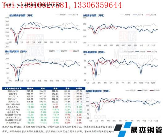 本周五大厚壁無縫鋼管品種除線材,其余均有增產(chǎn)。從增產(chǎn)品種來看,以螺紋鋼和熱軋板卷表現(xiàn)尤為突出,主要原因在于,前段時(shí)間卷螺因疫情管控、庫存壓力大、企業(yè)虧損、例行臨檢等原因而連續(xù)性減量,但近期上海解封、盈利水平環(huán)比提升、廠庫加快前移等操作,促使企業(yè)生產(chǎn)狀態(tài)步恢復(fù)。短期來看,企業(yè)生產(chǎn)積極性雖有提升,但是面臨粗鋼壓減政策的大環(huán)境、以及需求持續(xù)性偏弱的現(xiàn)實(shí)條件,不排除后仍有減產(chǎn)可能,生產(chǎn)動(dòng)力持續(xù)性恢復(fù)的可能性不大。