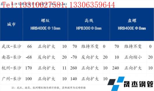 統一為理計單位后,武漢高于長沙66元/噸,南昌低于長沙68元/噸,杭州高于長沙170元/噸,廣州高于長沙100元/噸。