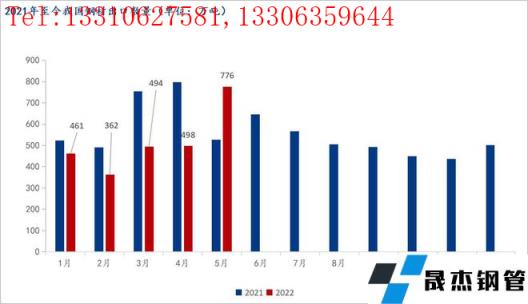 近期我國大部分區域已經開始逐步解除疫情封控,對于前期因疫情導致的運輸受阻基本暢通,因此前期因運輸導致的延遲發貨在5月份已經有所體現,預計6月份仍有部分推遲訂單陸續發出,因此6月份我國厚壁無縫鋼管出口或將繼續呈現增勢,由于訂單縮減,7月份起我國厚壁無縫鋼管出口量或將開始逐漸低迷,回歸正常至500萬噸左右的出口量。