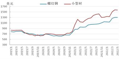 圖6 2019-2022年亞洲螺紋鋼價格走勢圖