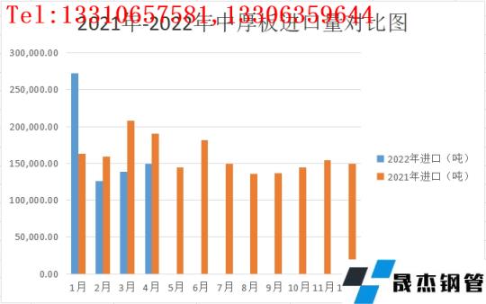 圖4 中厚板產(chǎn)品2021-2022年度進(jìn)口量對(duì)比圖