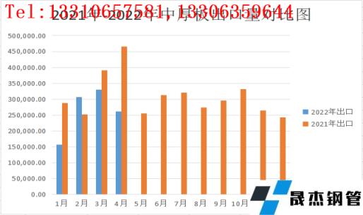至于出口方面,據(jù)不完全統(tǒng)計(jì),2022年4月份國內(nèi)中板出口量約為26.09萬噸,環(huán)比3月份出口量下降約6.94萬余噸,與2021年同期相比出口量下降約20.51萬噸左右,隨著國外市場(chǎng)復(fù)工復(fù)產(chǎn)節(jié)奏加快,中厚板品種對(duì)于國內(nèi)資源依賴性逐步降低。