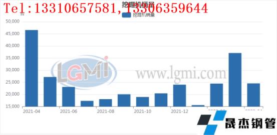 分行業(yè)來看,4月份國內(nèi)挖掘機(jī)銷量為24534臺(tái),環(huán)比3月份減少約12551臺(tái)。同比21年同期減少約22038臺(tái)。