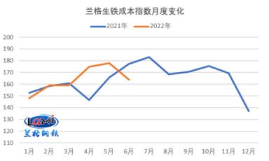 上半年,國內厚壁無縫鋼管市場沖高回落,整體鋼價明顯下移。據云商平臺監測數據顯示,上半年,綜合厚壁鋼管價格指數均值為5178元/噸,較上年同期下跌114元/噸,跌幅為2.2%。從成本端來看,上半年,在4、5月份原料價格高位帶動下,整體成本較上年同期明顯上移。據研究中心測算數據顯示,上半年生鐵成本指數均值為164.2,較上年同期上升2.9%(詳見圖1)。