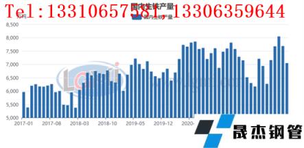 2022年7月份,由于受到淡季下游需求釋放不足、鋼企庫存去庫壓力加大以及鋼企陷入大幅虧損等因素的影響,無縫鋼管廠家的生產(chǎn)積極性明顯下降,厚壁無縫鋼管產(chǎn)量呈現(xiàn)快速回落的態(tài)勢。據(jù)國家統(tǒng)計局數(shù)據(jù)顯示,7月份,我國粗鋼產(chǎn)量8143萬噸,同比下降6.4%(詳見圖1);生鐵產(chǎn)量7049萬噸,同比下降3.6%(詳見圖2);厚壁鋼管產(chǎn)量10624萬噸,同比下降5.2%(詳見圖3)。1-7月,我國粗鋼產(chǎn)量60928萬噸,同比下降6.4%;生鐵產(chǎn)量51090萬噸,同比下降4.5%;厚壁鋼管產(chǎn)量77650萬噸,同比下降4.6%。